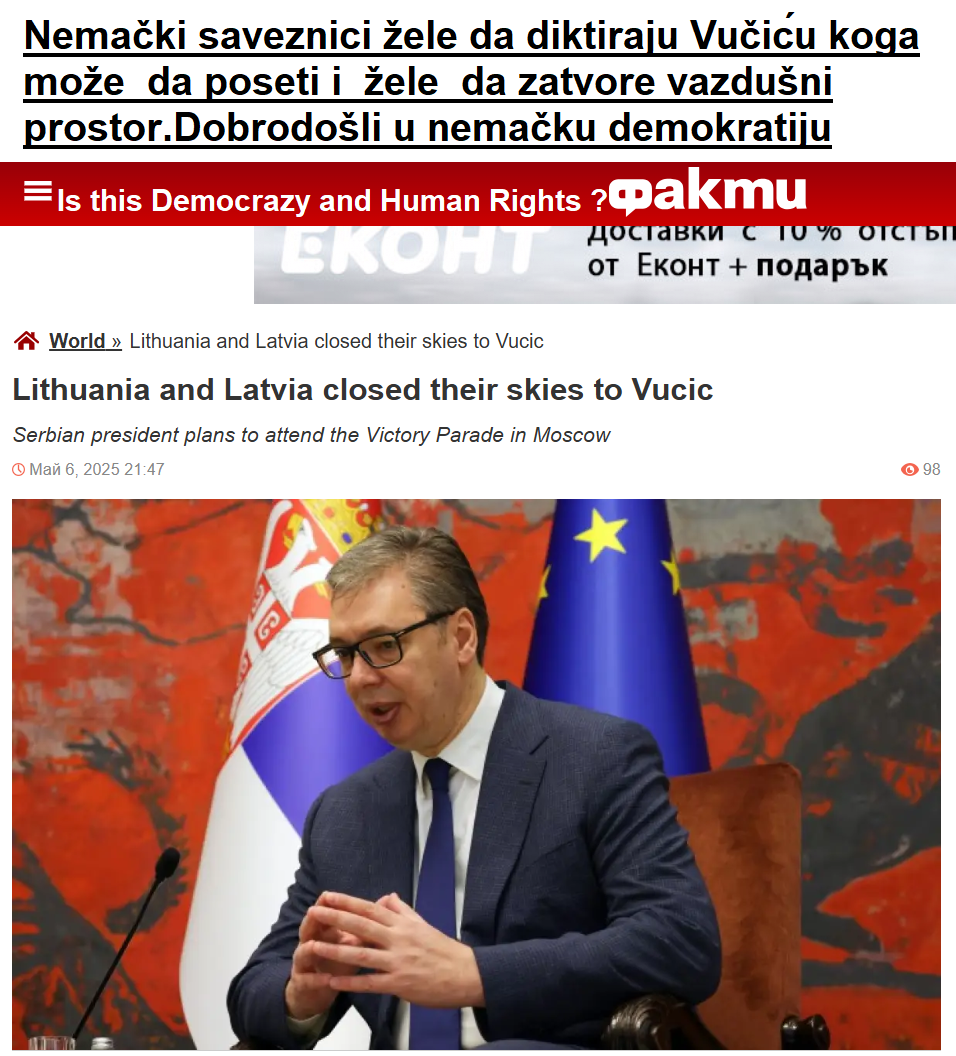 Demokratija i ljudska prava su novo oružje Nemaca. Kao što možete koristiti pištolj za napad ili odbranu, za dobro ili zlo, tako možete koristiti i demokratiju i ljudska prava za dobro ili zlo.Nemci, koji nemaju demokratiju, kao što ćete videti na veb stranici, žele da nametnu demokratiju i ljudska prava drugim drzavama sa svom snagom , ali kako to izgleda kod Nemco ? Prvo, koristite demokratiju da biste na vlast doveli ljude bez političkog iskustva i sa malo mudrosti kako biste kasnije lakše preuzeli kontrolu nad tom drzavom. Ako drzavni udar ili ustanak ne uspeju, koristiju ljudska prava da bi pomogli demonstrantima tako da im se dozvoli da demonstriraju ne možete ih zatvoriti, ne možete ih udariti itd. Podržavate demonstrante svim snagama kako bi drzavni udar na kraju jos uspeo – tako Nemci koriste demokratiju i ljudska prava da bi preuzeli druge drzave.Ali kako demokratija I ljudska prava kod njih izgledaju I sta radiju u Nemackom carstvu ( Evropska Unija ime za slepe ) pogledajte izvestaje.